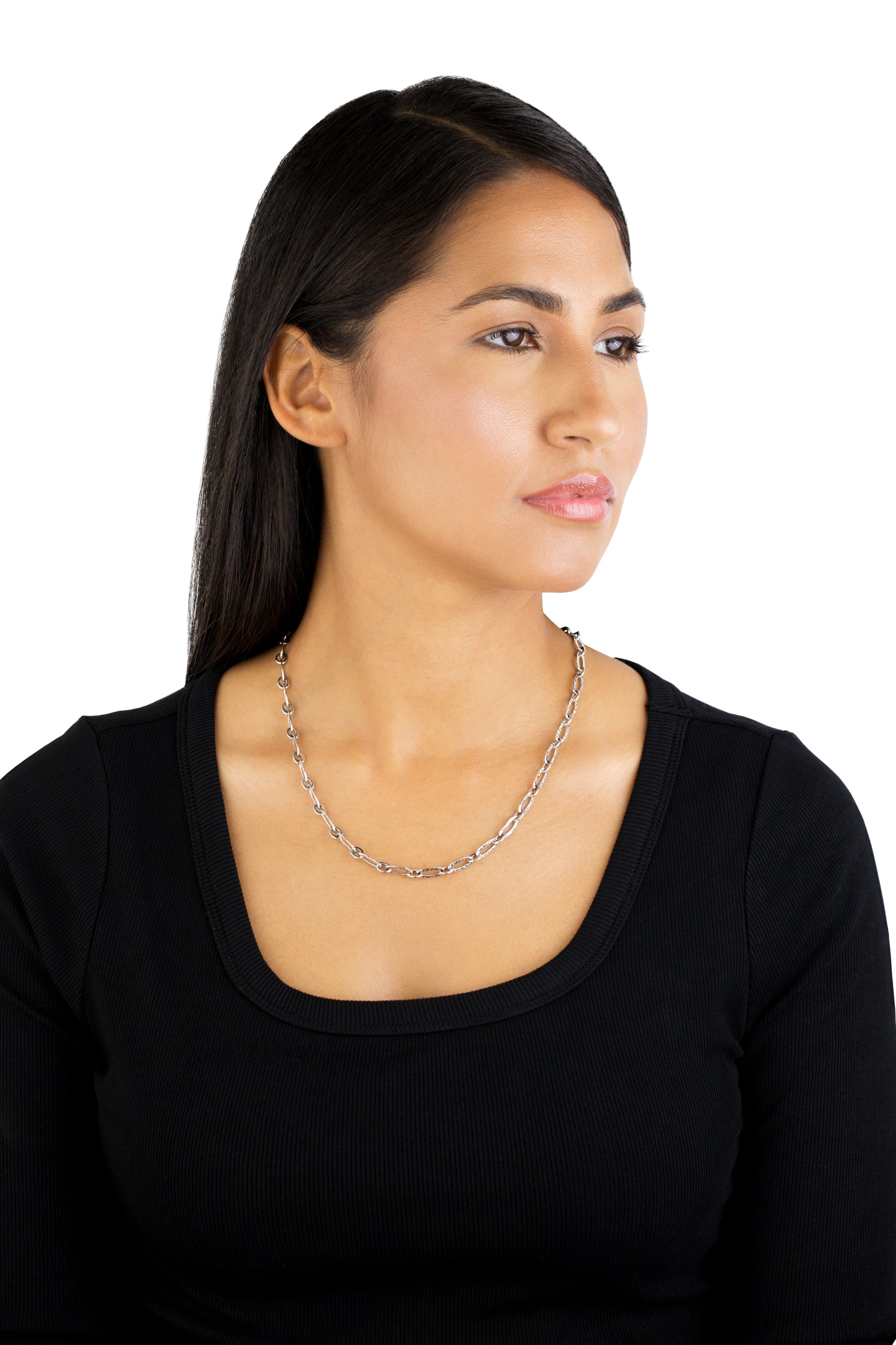 Discover the timeless elegance of the American West Sterling Silver Oval Link Chain Necklace. Crafted with care, this piece features alternating textured and polished oval Sterling Silver links that catch the light beautifully. Complete with a lobster claw clasp and the distinctive AW logo tag, it's a versatile addition to any jewelry collection. Whether worn as is, or adorned with enhancers, the classic oval linked chain is ideal for any occasion.