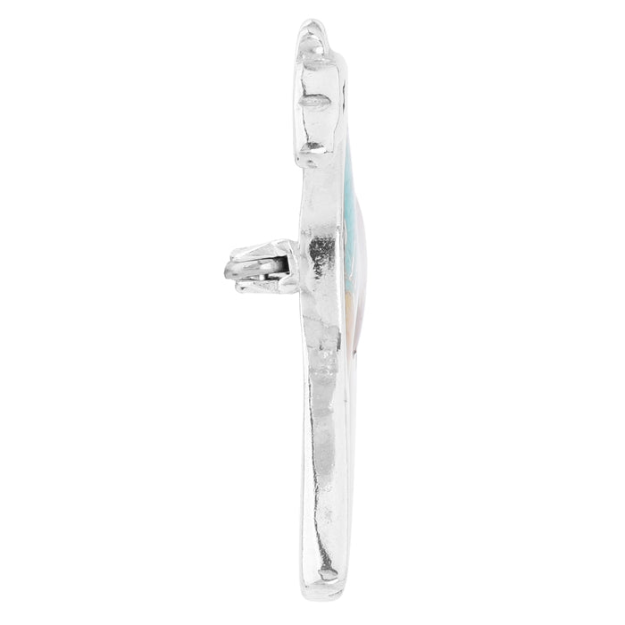 This naturally colorful Southwestern Sterling Silver pin features Turquoise, Red and Yellow Jasper gemstone inlay and beautiful symbols. Genuine gemstones are chipped in small pieces and hand set inlayed to create the body of the horse. Horses represent an independent and adventurous spirit, while the spiral design represents everlasting life and the sun is a symbol of happiness. This stunning pin is part of the Spirit Stone Collection, which features animal-inspired pieces that embody the power of the wild through genuine, hand-carved gemstones.