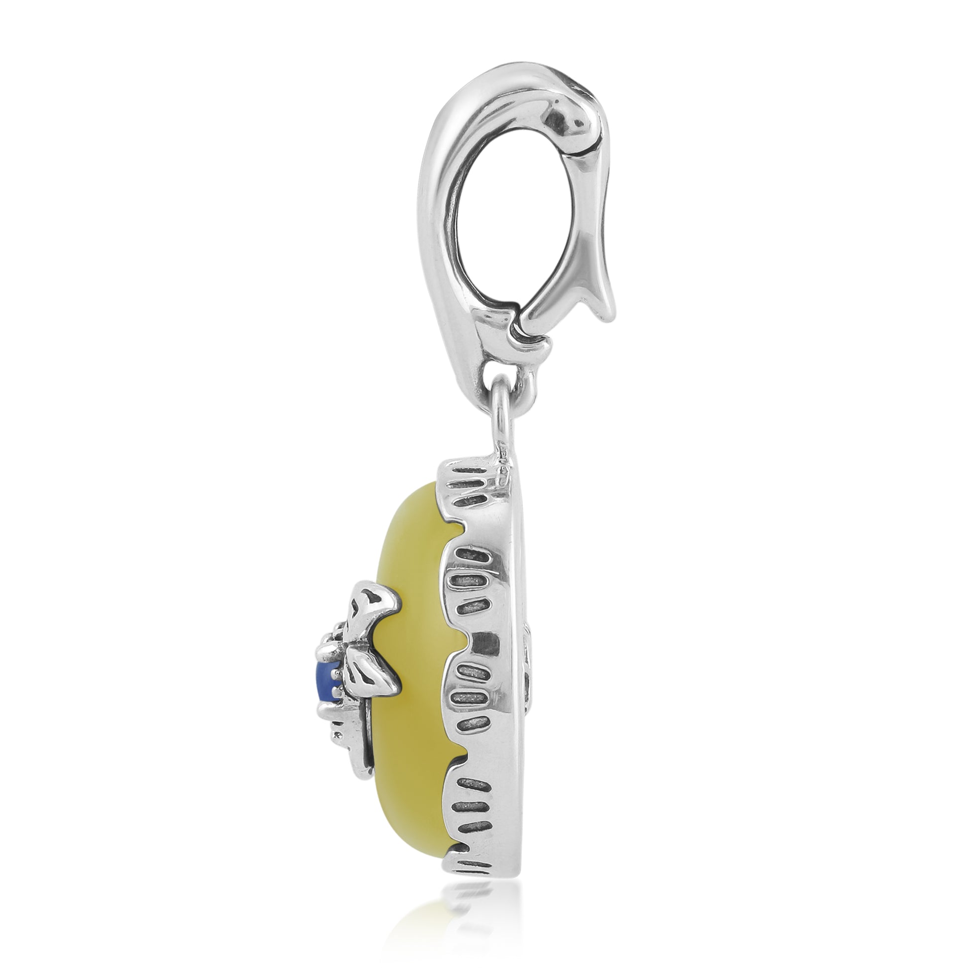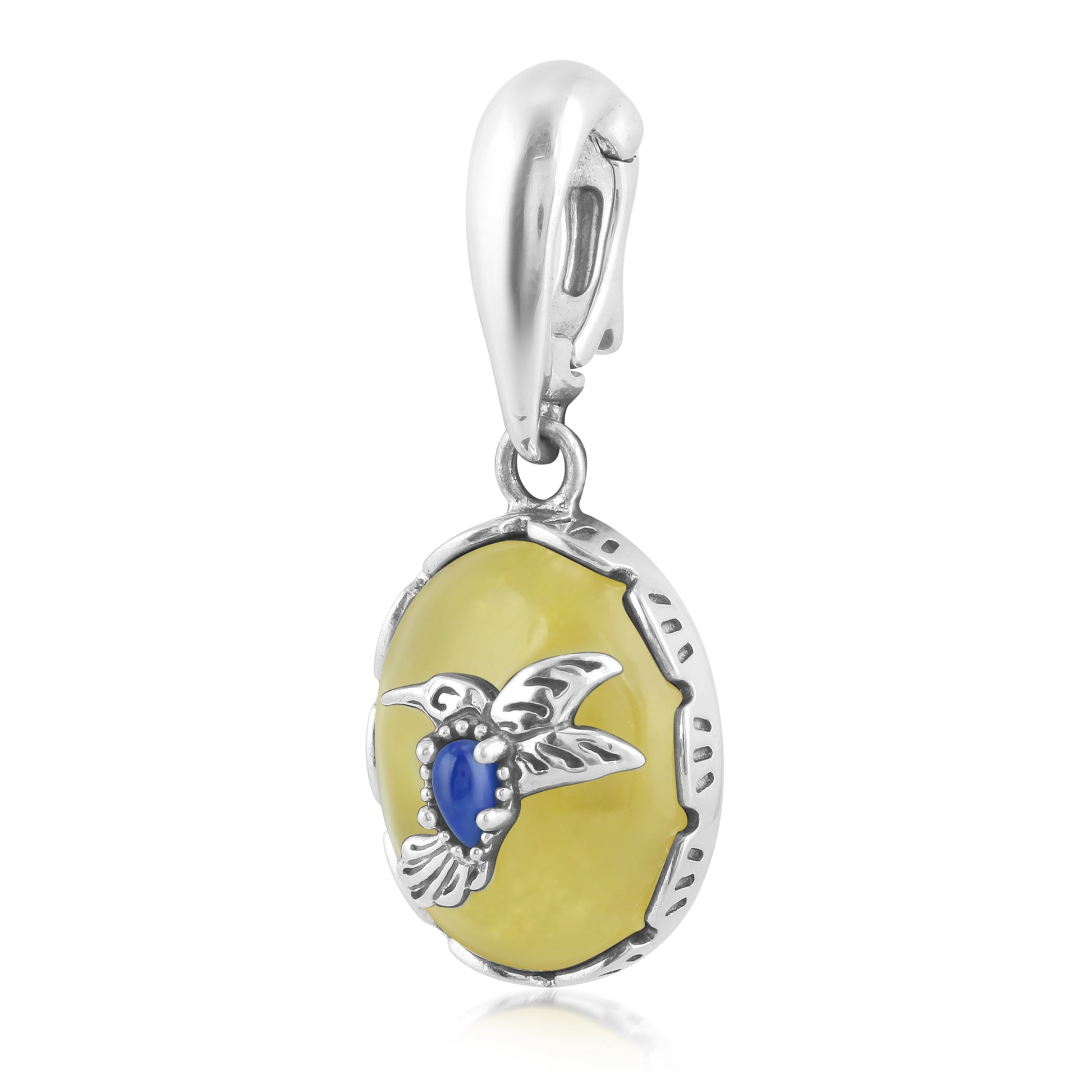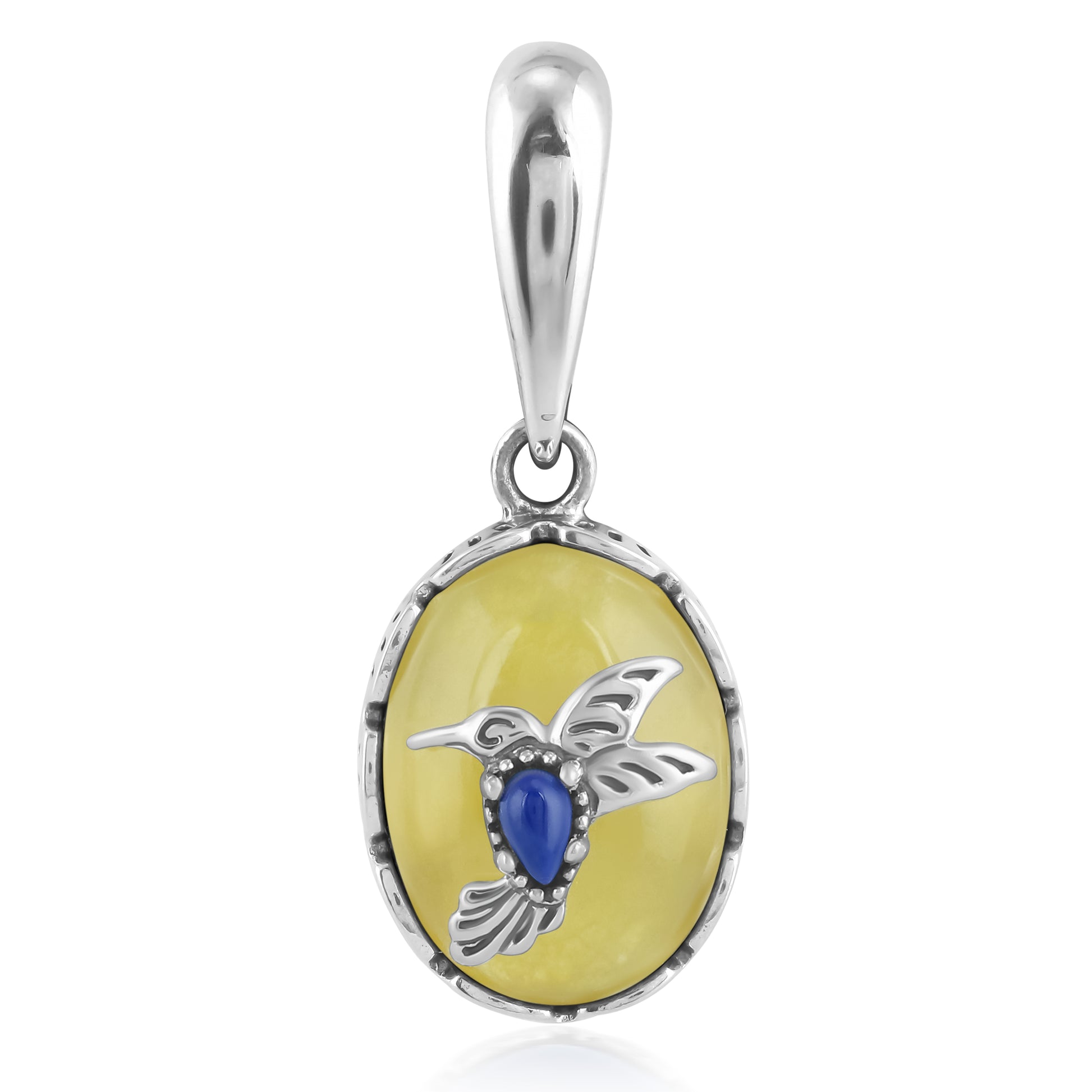 Sterling Silver Yellow Quartz and Lapis Gemstone Hummingbird Pendant Enhancer