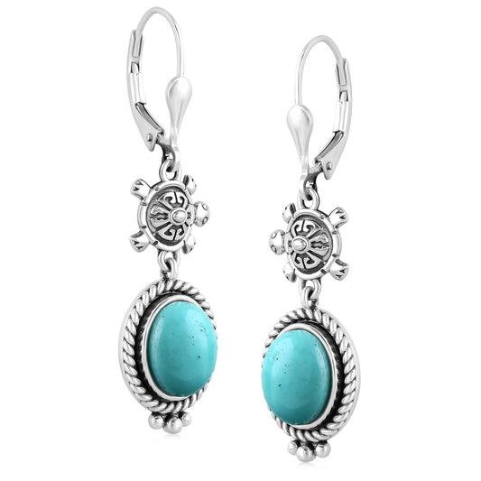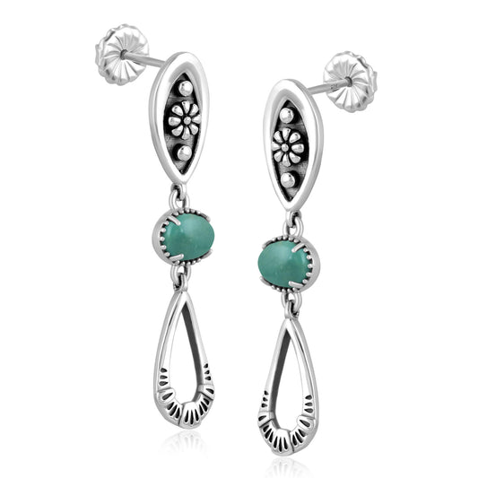 Sterling Silver Green Turquoise Oval-Cut Dangle Earrings
