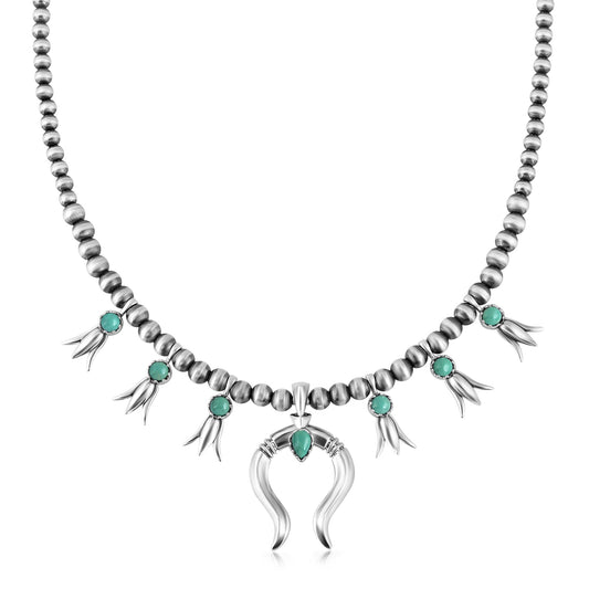 Sterling Silver Green Turquoise Beaded Squash Blossom Necklace, 16 to 19 Inches