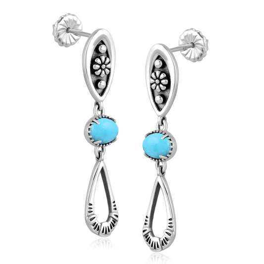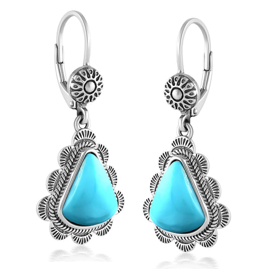 Sterling Silver Sleeping Beauty Turquoise Teardrop Double Loop Gemstone Earrings