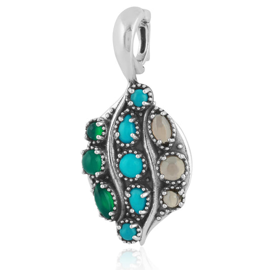 Sterling Silver Green Turquoise Gemstone Rope Naja Pendant Enhancer