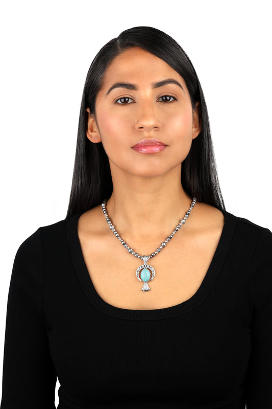 EXCLUSIVELY OURS! Sterling Silver Kingman Turquoise Fritz Casuse Squash Blossom Naja Crescent Moon Pendant Enhancer