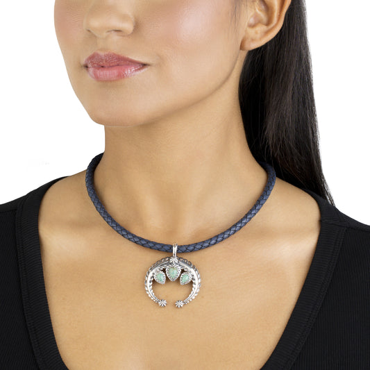 Sterling Silver Green Turquoise Fritz Casuse Naja Crescent Moon Pendant Enhancer