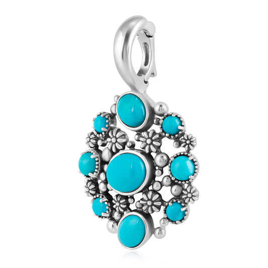 LIMITED EDITION! Sterling Silver Kingman Turquoise Oval Floral Cluster Pendant Enhancer